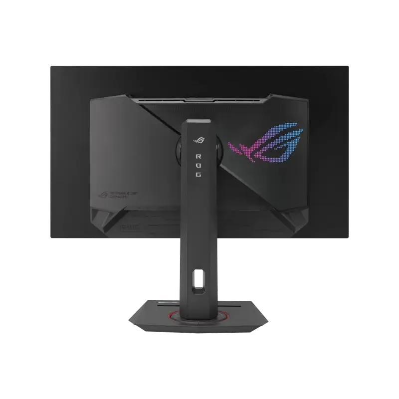 مانیتور ASUS XG27AQDMG از طراحی شاخص سری ROG بهره میبرد؛ ترکیبی از خطوط تهاجمی، متریال باکیفیت و نورپردازی Aura Sync RGB.